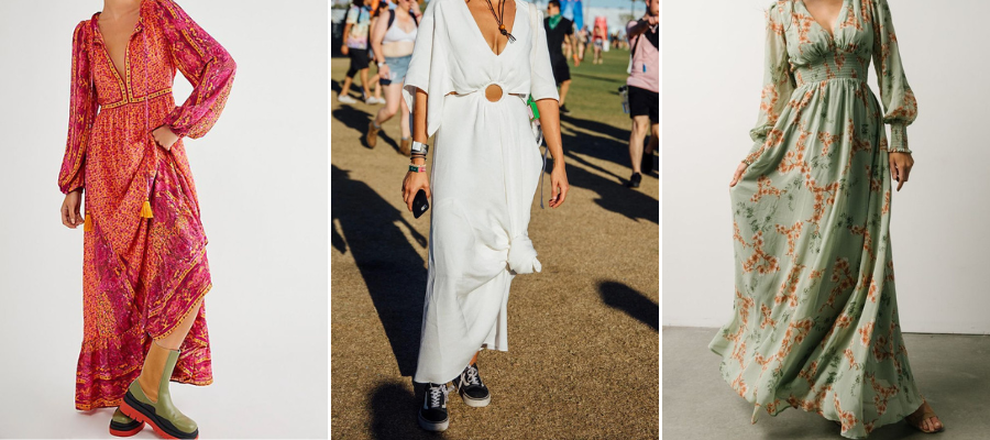 No matter what type of concert or festival you’re headed to, you can’t go wrong with a band tee. Pair your tee with a long skirt to add some leg coverage while staying nice and cool.