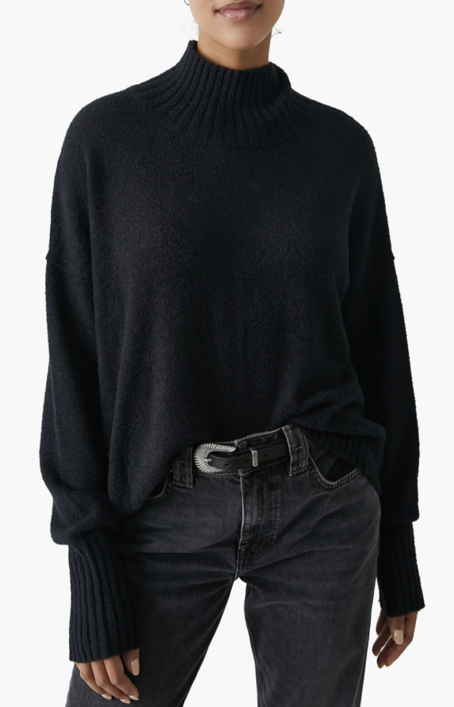 This mock neck sweater has been a fall and winter staple and is perfect for the holiday season. Its oversized fit is flattering and cozy.